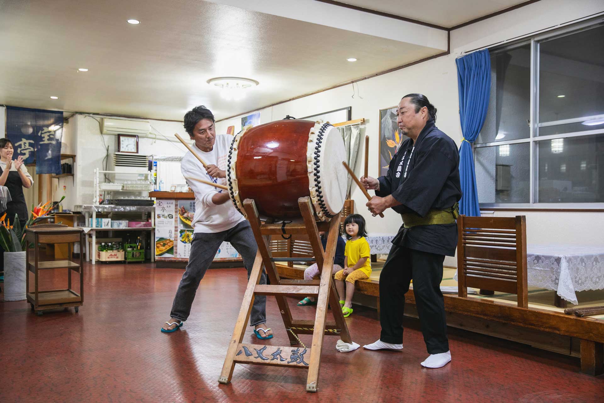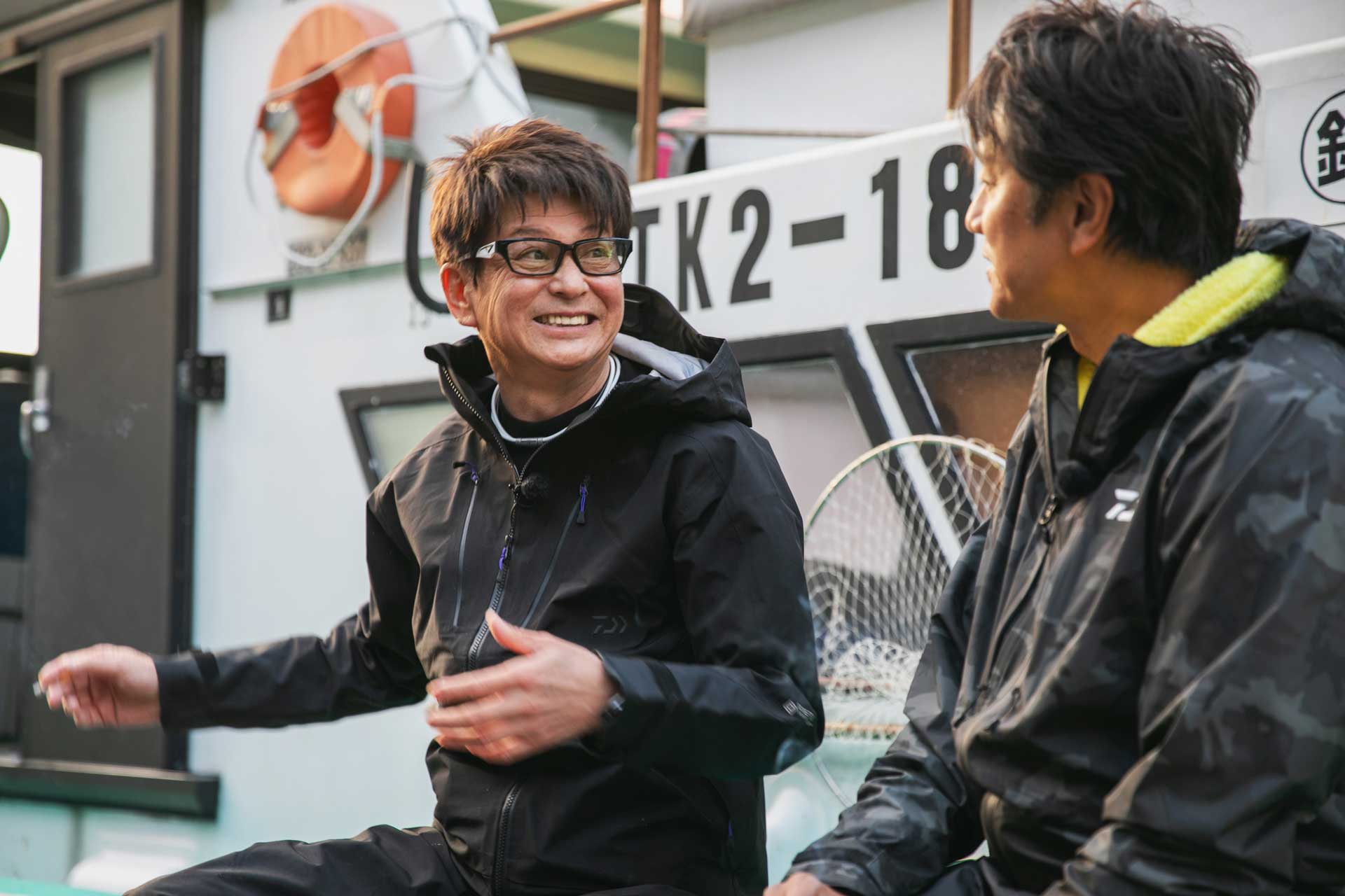 初日の釣り対決後の2人の様子がちょっと暗いです。